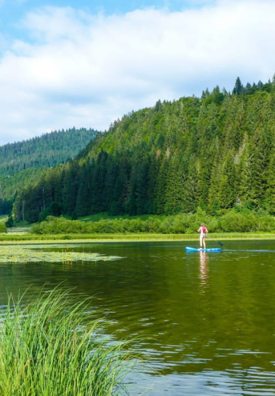 Des dizaines de lacs, de douces rivières et des torrents tumultueux. Imaginez-vous découvrir ces trésors aquatiques, à fleur d'eau, bien installé dans votre canoë ou votre kayak ? Pour le plein de sensations en famille, optez pour une descente en rivière sur la Loue ou une découverte plus calme sur le lac Saint-Point, le lac Chalain ou d'autres ! Autre option : une location de paddle ou de pédalo, pour une approche tout en douceur. Quant aux sportifs, tourbillons et rapides feront votre bonheur !