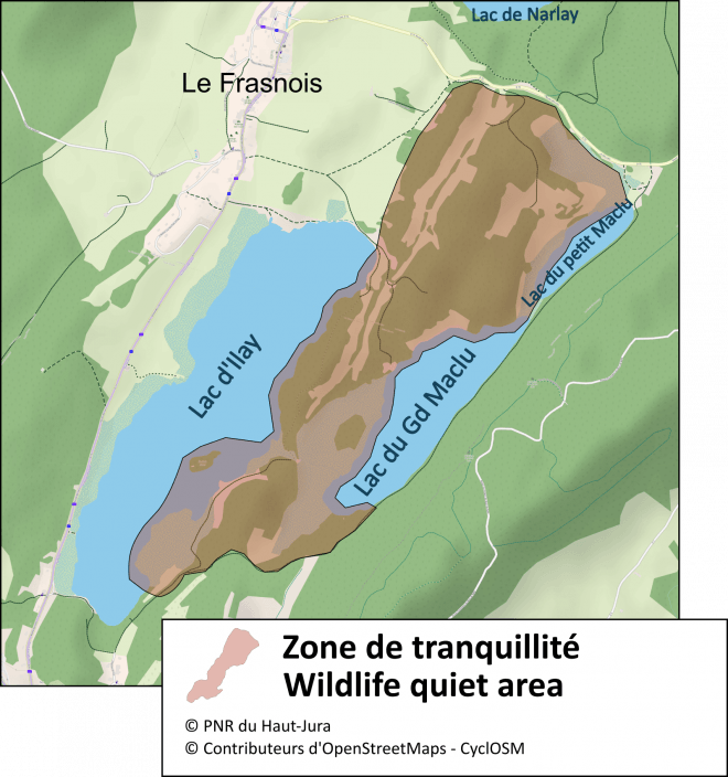 Elle concerne la zone entre les lacs d’Ilay, du Petit et du Grand Maclu, incluant également l’ile de la Motte et les zones de rivage afin de limiter les impacts sur les paysages, la ressource en eau, la biodiversité et de la qualité du cadre de vie.