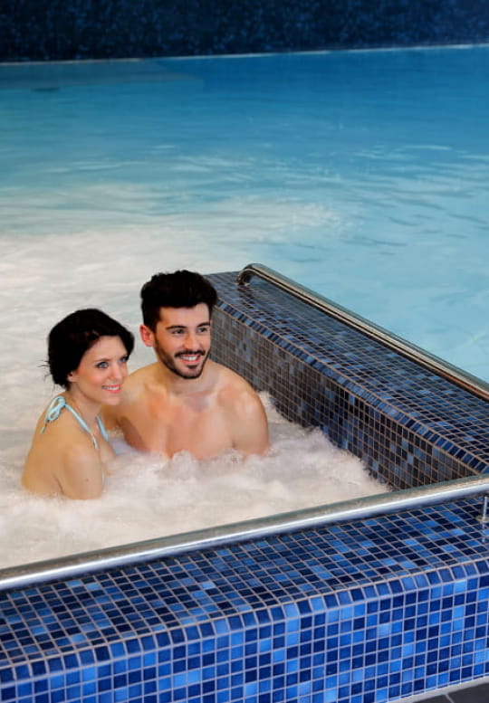 Au menu : un immense bassin de détente, des buses et cascades de massage, un jacuzzi, trois saunas, un hammam.