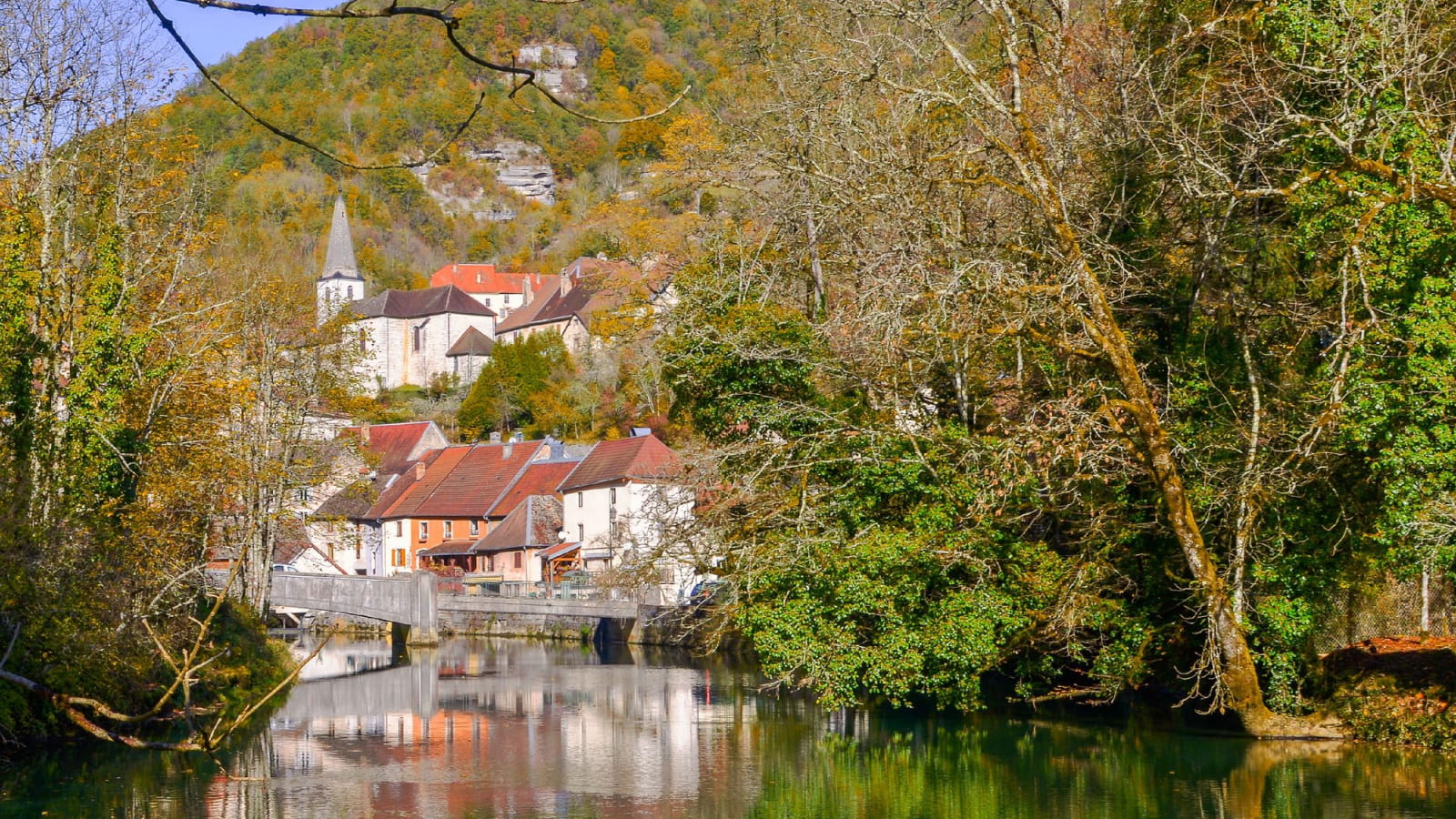 Lods, une phonétique qui en dit long et qui nous rappelle que dans ce splendide village, c’est bien l’eau qui fait l’âme du lieu. Franchissez le pont pour justement contempler La Loue qui traverse le bourg sous forme de jolies chutes d’eau.