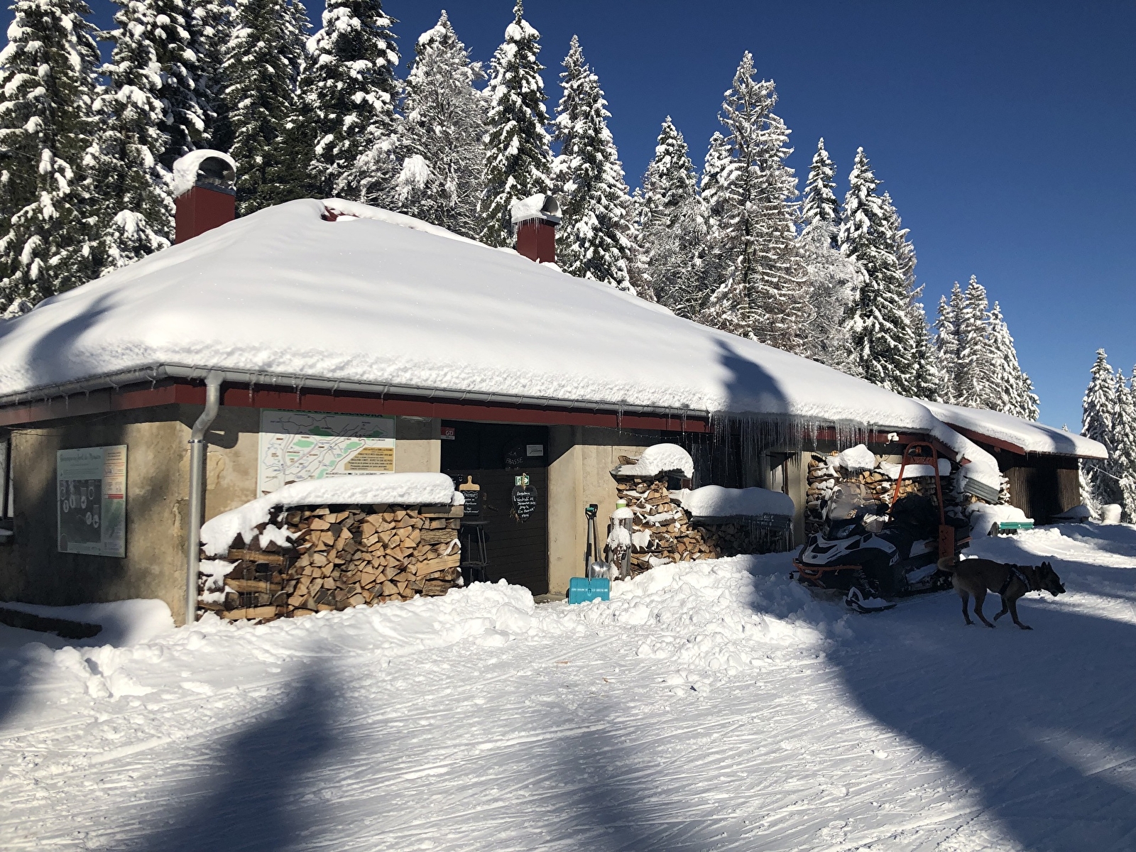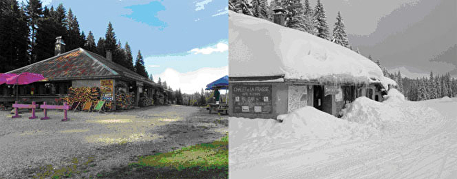 Le Chalet de la Frasse situé idéalement dans la forêt du Massacre sur la Grande Traversée du Jura vous ouvre ses portes tous les jours pendant les périodes Hiver/Été.