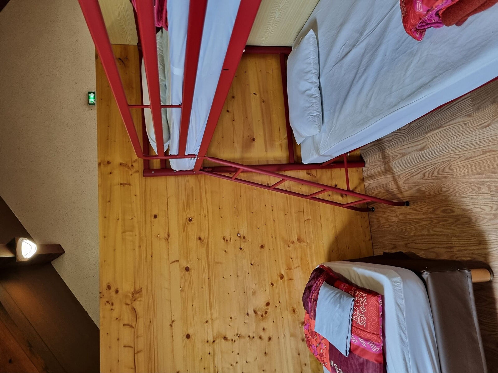 Il est composé de 3 chambres de 4 à 5 lits (dont 2 superposés dans chacune), d'un dortoir composé de 4 box avec chacun 4 lits (2 simples et 2 superposés), de 3 salles de bain (4 douches et 4 WC), d'une salle à manger de 30 places avec un petit espace détente, une cuisine équipée, une salle de jeux avec table de ping-pong, baby-foot, fauteuils et canapé, d'un vestiaire et d'un local sécurisé pour vélos, skis et luges.