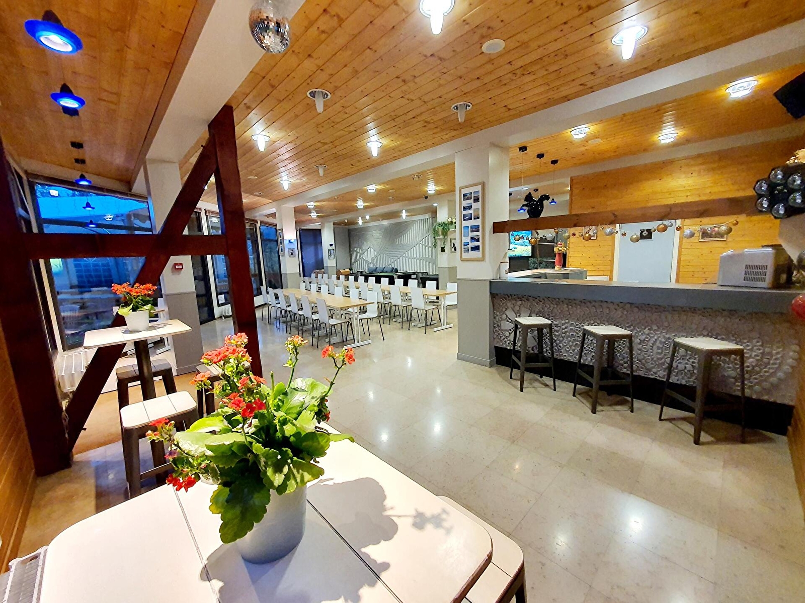 Pour se reposer, nos clients ont accès à 18 grandes chambres, dont 6 avec balcons, qui donnent toutes sur la montagne et la forêt du massif jurassien. Le Gîte propose différentes formules allant de la location en gestion libre avec privatisation du gîte à des chambres proposées à la nuitée avec petit déjeuner et table d'hôte le soir. La vaste salle de réception du rez-de-chaussée est l’espace parfait pour se réunir lors des repas, se divertir autour du billard, du baby-foot ou lors d’un verre au bar ou au salon devant la cheminée. La cuisine professionnelle tout équipée mise à la disposition des groupes offre de nombreuses possibilités pour préparer des moments de restauration inoubliables qui se prolongent sur la grande terrasse avec son Barnum installé du printemps à l’automne et où les BBQ et les apéritifs s'enchaînent durant la belle saison. Notre sauna est un moment très apprécié par nos visiteurs sportifs qui désirent profiter d’un instant de réconfort après l’effort physique ou qui veulent simplement se détendre.