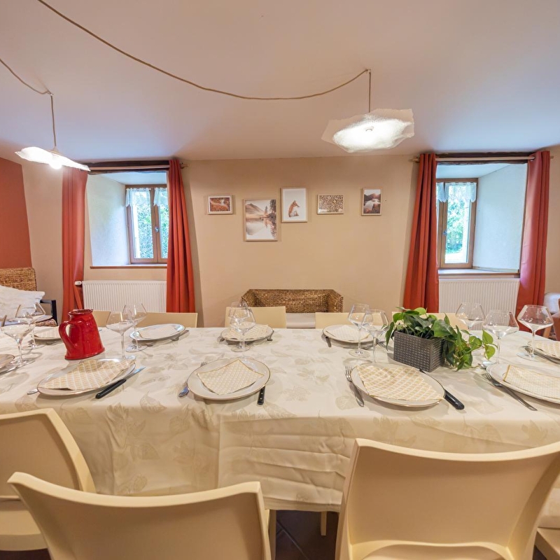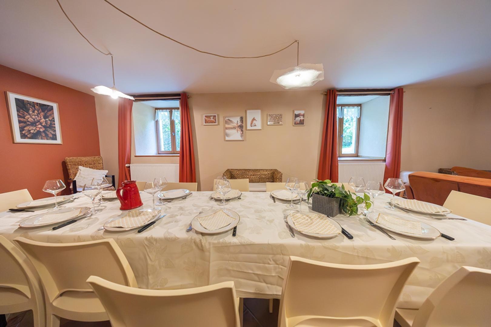 Idéalement située dans un charmant petit village de la région des lacs, venez découvrir en famille ou entre amis cette maison confortable et très bien équipée ! Au rez de chaussée, hall d'entrée, cuisine indépendante, salle polyvalente (pouvant être utilisée comme salle à manger ou salle d'activités telles que yoga, relaxation...), un premier salon avec télévision écran plat et lecteur DVD, un second salon avec bar et cheminée. La chambre "jardin" est équipée d'un lit de 140cm. Une salle d'eau avec wc intégrés, une salle de bain, wc indépendants. Au premier étage, une mezzanine avec un coin bureau, et quatre chambres : le dortoir, avec 4 lits de 90cm, la chambre "voyage" avec 2 lits de 90cm, la chambre "exotique" est composée d'un lit de 140 et un lit de 90cm et la chambre "soleil" un lit de 140cm et un lit de 90cm. A cette étage se trouve aussi une salle d'eau avec une douche à l'italienne et un wc indépendant. Au deuxième étage, se trouve la chambre "le pigeonnier" qui comporte 2 lits de 90 et un lit de 180. A l'extérieur, dans le grand parc arboré, vous pourrez disposer à la belle saison de salons de jardins, barbecue et chaises longues afin de profiter au mieux de ce petit coin de paradis. Vous l'aurez compris, au gîte du Mont Gery c'est le ressourcement garanti ! Note : la capacité totale du gîte est de 18 personnes afin de proposer des couchages adaptés à tout type de public mais la capacité du gîte ne peut excéder 15 personnes - installation de camping-car interdite Forfait ménage obligatoire d'un montant de 200 euros pour les séjours de foyers et associations, et les camps de vacances de jeunes.