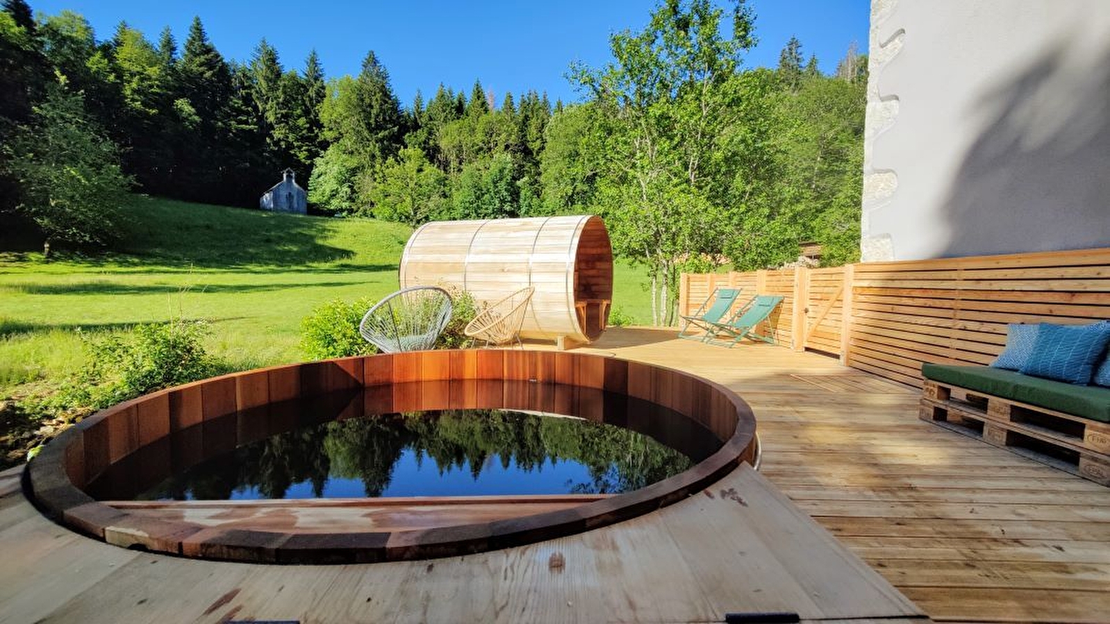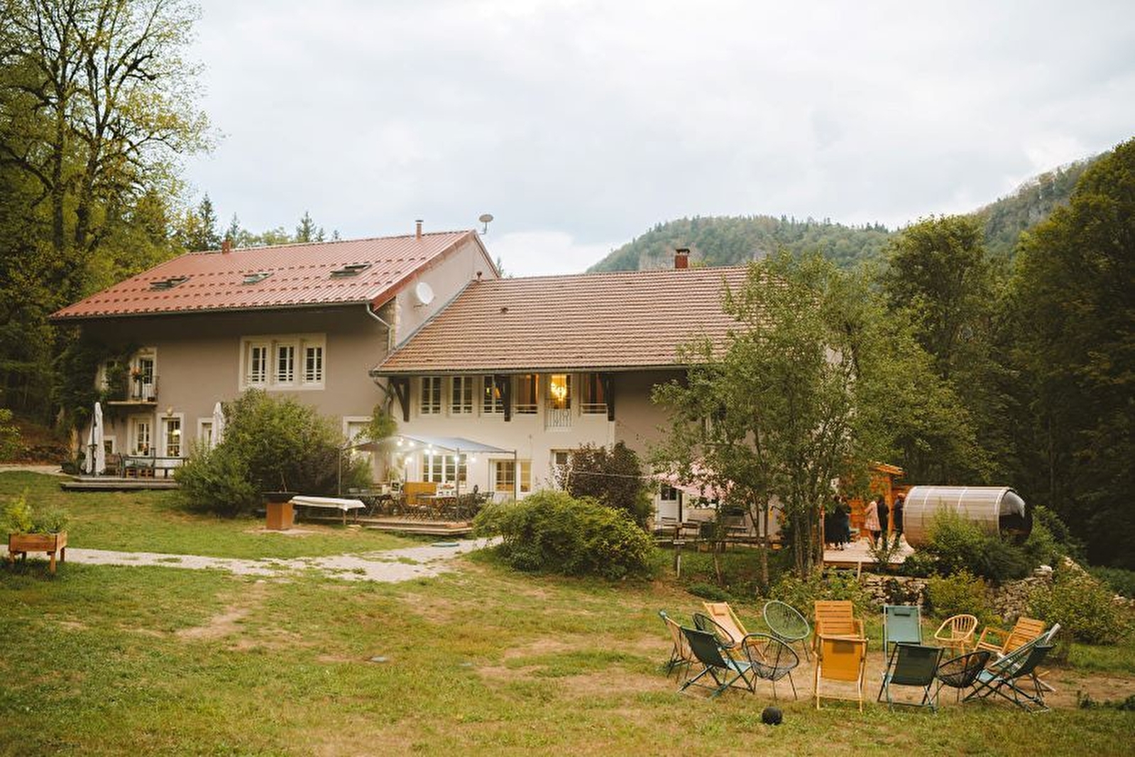 Au coeur des montagnes du Jura, le domaine le Coupet vous accueille en famille, entre amis ou pour un événement professionnel jusqu’à 25 personnes. Lors de votre séjour vous disposerez d’un gîte immense et grand confort, d’un spa extérieur (sauna panoramique et bain nordique) ouvert en toutes saisons, d’un wifi haut débit et d'étonnantes installations extérieures qui enchanteront petits et grands. 8 chambres dont 7 avec sanitaires (3 lits 2 places en 160, 22 lits 1 place en 90). Une grande pièce à vivre avec cuisine ouverte, salons et salle de jeux pour profiter pleinement des lieux. Au choix vous résiderez en gestion libre ou en pension, avec la possibilité d’organiser pour votre groupe des repas événementiels et des activités sportives et créatives au contact de la nature. A seulement 1h30 de Lyon, Genève et Lausanne, Le Coupet est un lieu « into the Wild » où éco-responsabilité rime avec fête, joie et bien-être.