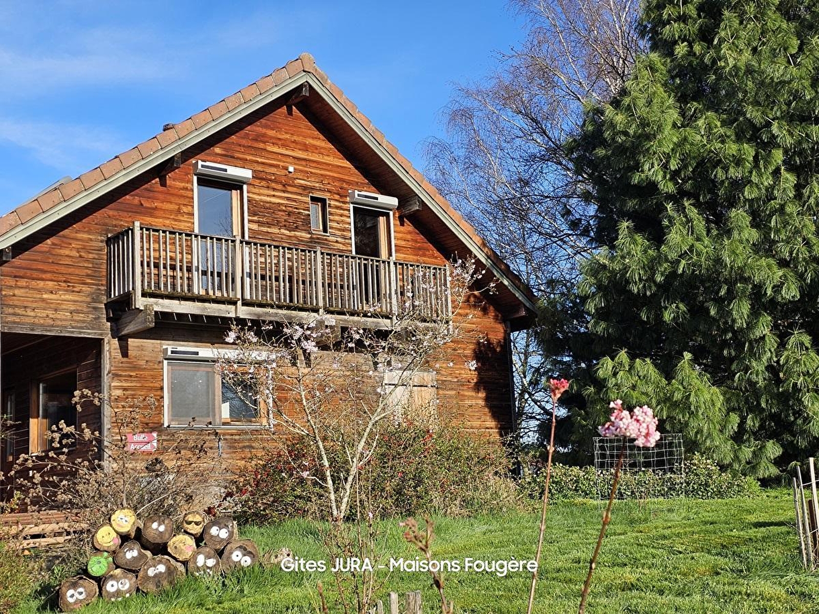 Vous souhaitez une maison indépendante ambiance chalet, chaleureuse et cosy ? Vous avez soif de nature ? Un lieu bucolique vous attend à proximité des sites emblématiques de Baume-les Messieurs, Château-Chalon, Arbois, Poligny et Dole, au cœur du Jura. La Maison des 4 saisons, est conçue pour vous offrir un séjour paisible. Vous disposerez d’un vaste espace de vie au rez de chaussée : lumineux, ouvert sur le sud et la nature à 180°, grand séjour, salon et cuisine. Les chambres sont décorées avec la recherche de mettre en avant un artiste local “Coup de cœur” ! Elles disposent toutes d’un sanitaire privatif (douche, vasque, WC séparé de la salle d’eau), et de lits modulables. Le gîte ouvert sur un jardin arboré, et parfumé dispose d’un balcon-terrasse (25m2) au sud, très apprécié pour la convivialité autour de bons apéros ! Inscrits dans une démarche de respect de l'environnement, nous avons aménagé un jardin d'agrément en biodiversité. A votre guise vous pourrez observer, écouter, sentir, la visite est offerte pour les séjours prolongés. Notre gîte est labellisé « Vignobles & Découvertes », et est qualifié Ecogestes et Biodiversité. Possibilité d’un accueil jusqu'à 15 personnes avec 2 chambres indépendantes situées 30m du chalet, sauf du 15 novembre à mars. Préférence location week-end (minimum 3 nuits pour jours fériés et saison estivale), séjours de 7 nuits et plus sur demande. Week-ends à thème (oenotouristique, sensoriel) avec la Bulle à Parfums sur place. Accueil de randonneurs (pédestres, cyclos, motards).