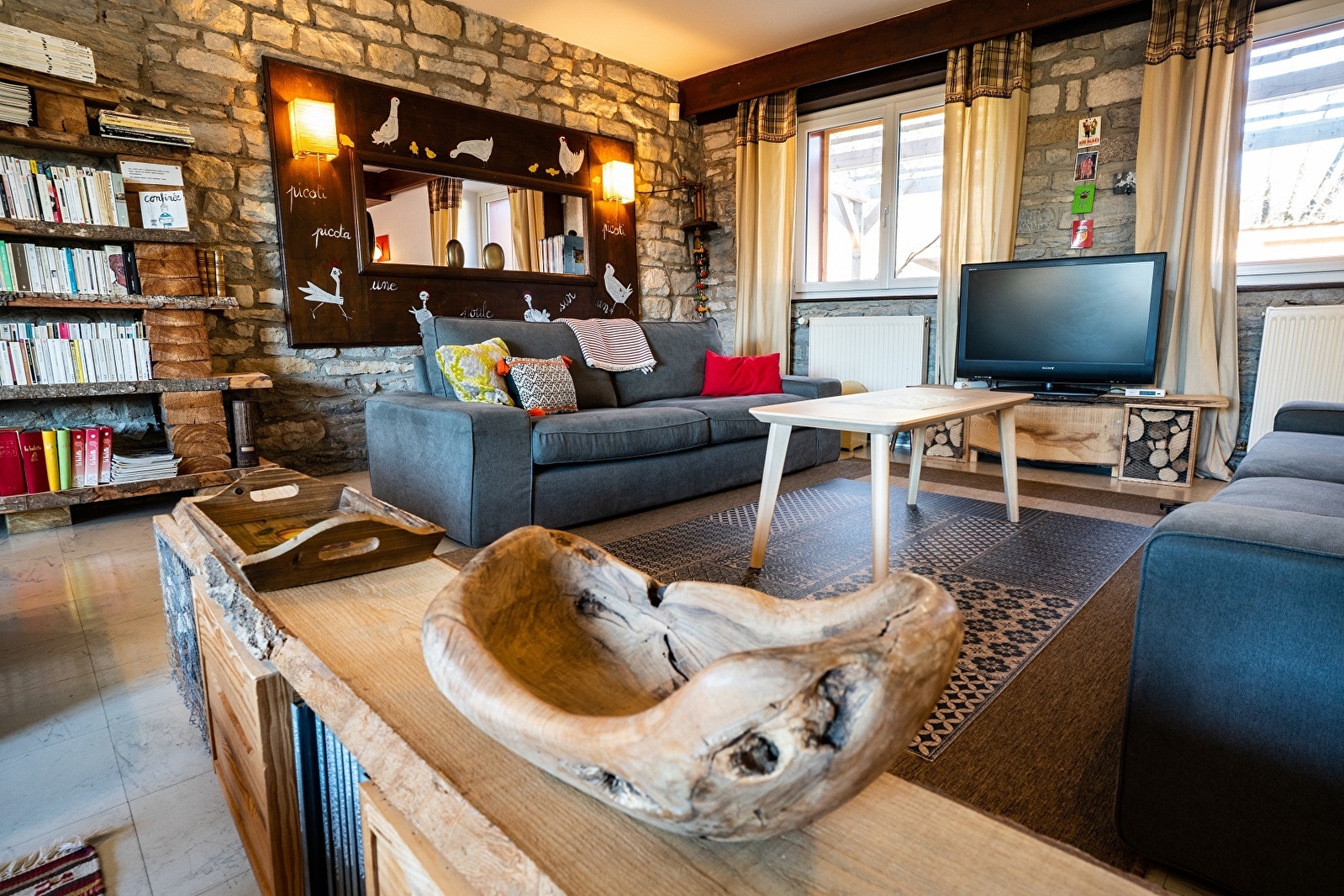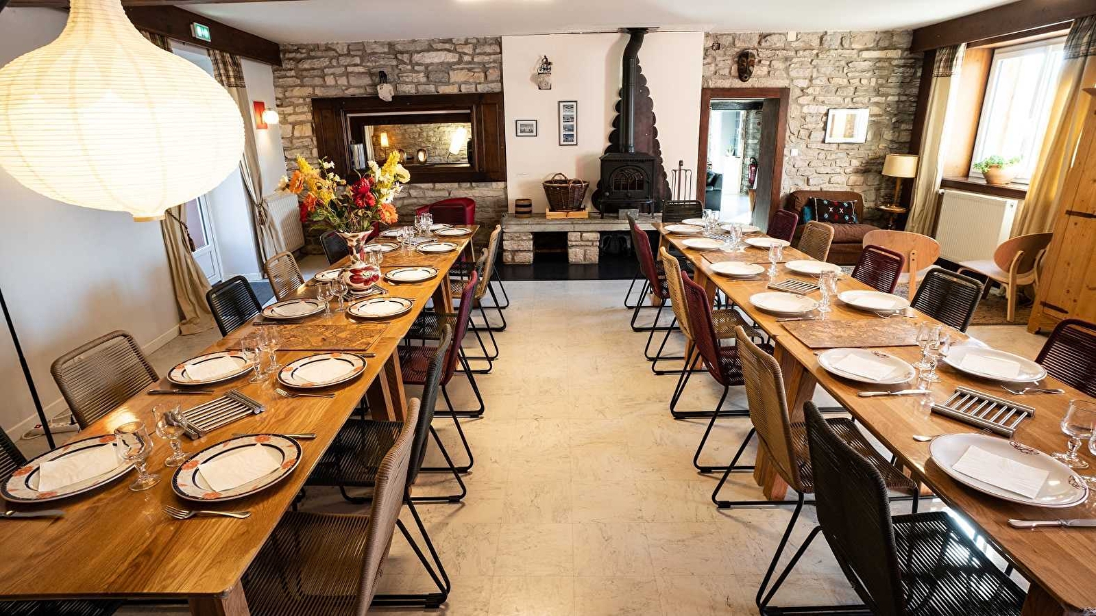 Que rêver de mieux qu'une grande maison de pierre et de mélèze pour vous réunir en groupe ! De l'espace à l'intérieur comme à l'extérieur, et du confort. Une belle cuisine lumineuse et fonctionnelle, un salon avec canapés en cuir, une salle de jeux, une bibliothèque, une grande salle de séjour et 10 chambres équipées d'une salle de bains complète, dont une au rez de chaussée accès handicapés. 3 terrasses pour partager les bons moments, une à l'Est, une à l'Ouest accessible de la maison et une dans le jardin près du grill, du sauna et terrain de boules dans le parc. Possibilité de commander des plats traiteurs (produits locaux de qualité) livrés directement! Les tarifs correspondent à la location de la maison complète. Possibilité de location 1 nuit sur demande : 1100 €. Nous n'acceptons pas à priori les animaux, dans tous les cas, merci de nous contacter.