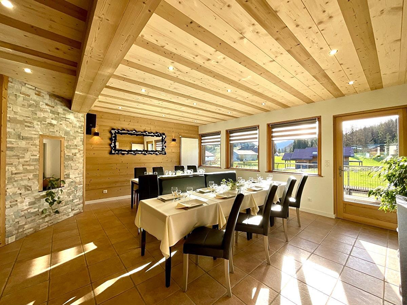 Envie de passer des vacances en famille ou entre amis mais avec chacun son indépendance? Alors ce gîte composé de 3 appartements indépendants sera le lieu idéal pour votre prochain séjour. Il se compose au rez-de-chaussée d'une grande pièce de vie de 70 m²avec salon TV et sono, salle à manger pour 15 personnes et cuisine professionnelle afin de partager les repas tous ensemble et des moments conviviaux, d'un WC indépendant. -Le Lapidaire, pour 4 personnes : pièce de vie avec salon et cuisine toute équipée, 1 chambre avec 2 lits 80*200 pouvant être jumelés avec salle d'eau privative équipée d'une douche et d'un WC, une seconde chambre avec 1 lit double (160*200) avec salle d'eau privative équipée d'une douche, d'un WC indépendant. Cet appartement offre un accès direct à la terrasse. -Les Platières, pour 5 personnes, au 1er étage : pièce de vie avec salon et cuisine toute équipée, 1 chambre avec 2 lits simples (80*200) et un lit armoire (90*190) avec salle d'eau privative équipée d'une douche, 1 chambre avec 2 lits simples (80*200) avec salle d'eau privative équipée d'une douche, d'un WC indépendant. -Le Crêt Pela, au 1er étage pour 6 personnes : pièce de vie avec salon et cuisine toute équipée, 1 chambre avec 2 lits simples (80*200) avec salle d'eau privative équipée d'une douche, d'un WC indépendant. Une seconde chambre pour 4 personnes avec 3 lits simples 80*200 (dont un superposé) et un clic-clac pour 1 personne avec salle d'eau privative (douche) et WC indépendant. Pour votre plus grand confort, les lits seront faits à votre arrivée, les serviettes de toilettes sont fournies et le ménage est inclus. Au 2ème étage, grande salle de jeux de 130 m² avec billard, baby-foot, table de ping-pong ainsi que de nombreux jeux de société et livres. Idéalement situé, sur le territoire des Hautes Combes, dans le Parc Naturel Régional du Haut Jura, vous pourrez vous adonner à un multitude d'activités : raquettes, ski de fond, ski alpin, visite de fruitières...