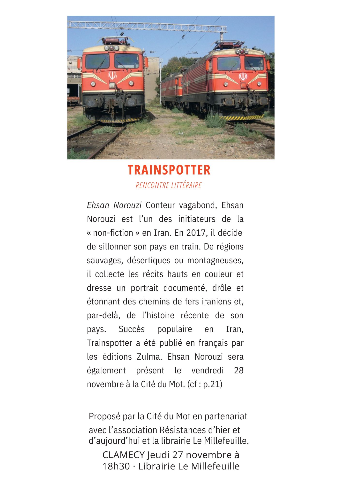 "Grands Chemins" Rencontre littéraire : Trainspotter d'Ehsan Norouzi CLAMECY