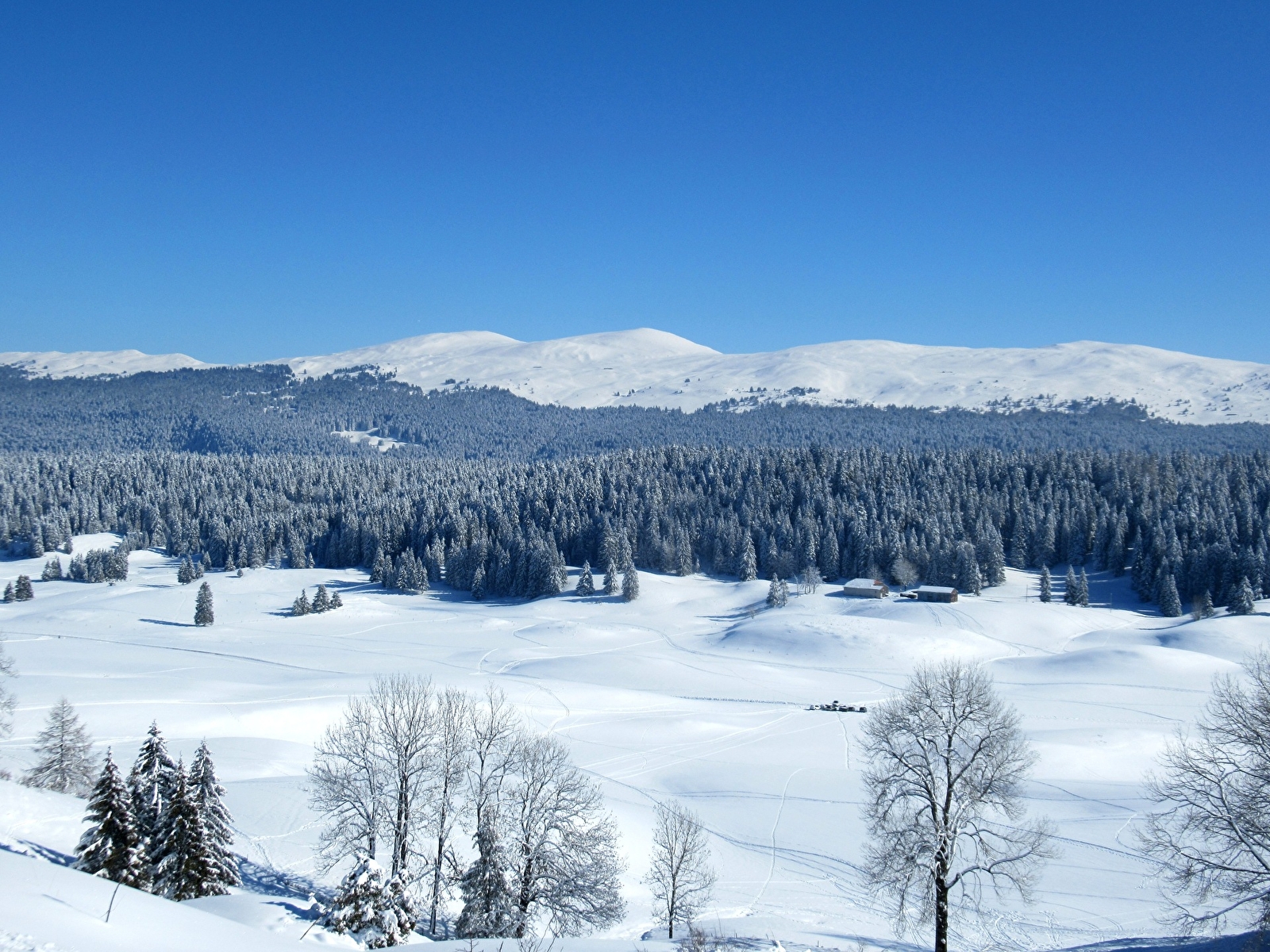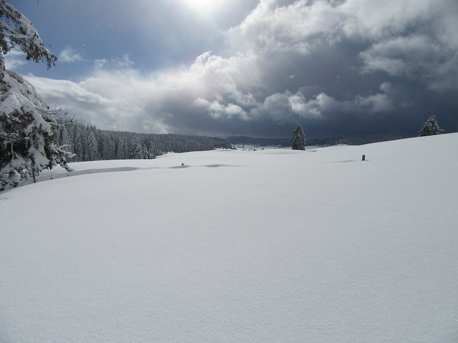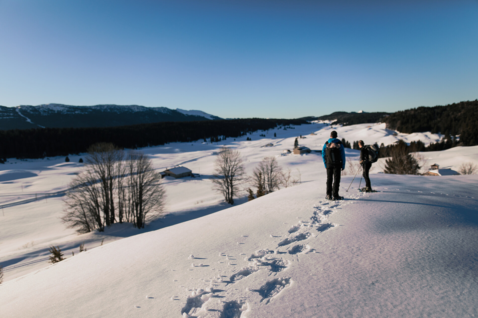 Les hautes combes du Jura entre Lajoux et La Pesse, présentent un relief nordique parfaitement adapté à la pratique de la raquette à neige.