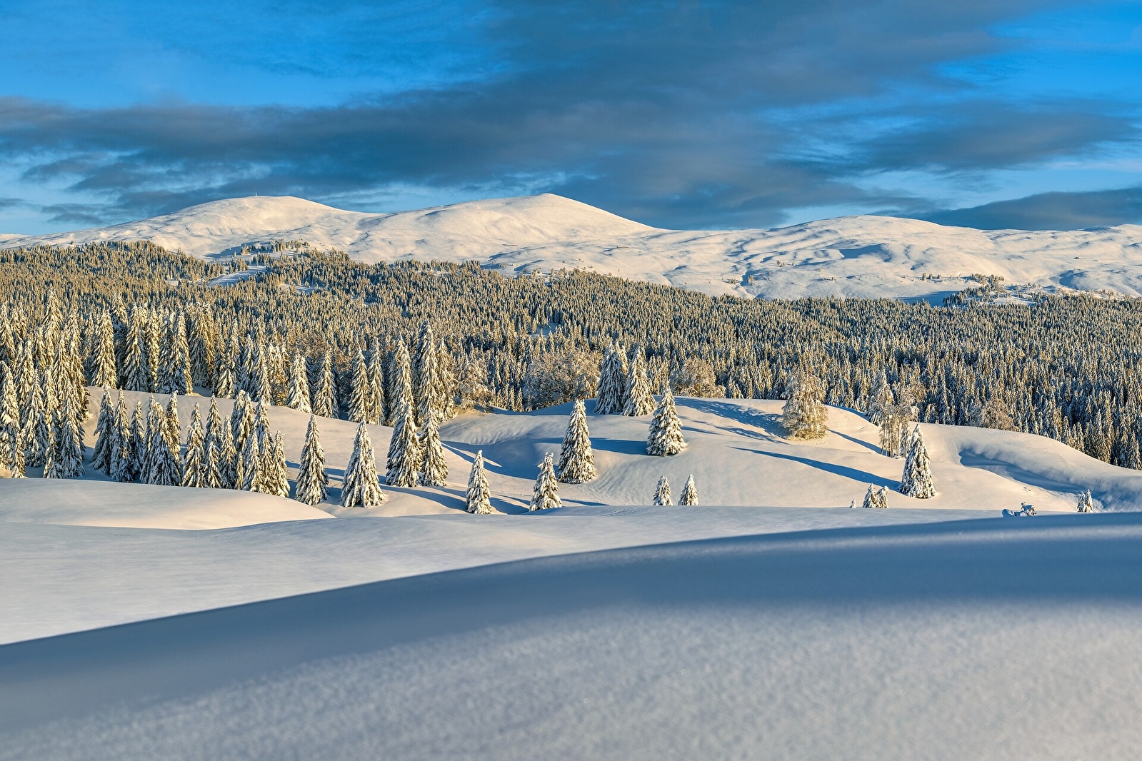 Enneigement : Les randonnées hivernales sont en train d'évoluer. Il y a des périodes où certaines étapes de cet itinéraire se font à pied avec les raquettes sur le sac ! Le séjour est avant tout un séjour de randonnée et si la neige vient à manquer, nous n'annulons pas les réservations. L'ambiance et la luminosité hivernale seront au rendez-vous même si vous ne pouvez pas chausser les raquettes. L'itinéraire hivernal de la GTJ traverse parfois des zones humides qui ne sont pas praticables sans neige, nous vous indiquons dans le carnet de route l'itinéraire à suivre pour les éviter ; il s'agit souvent d'une petite route. La montagne est très différente en hiver. Les couleurs ne sont pas les mêmes que l'été et le soleil est plus bas sur l'horizon, offrant des lumières de coucher de soleil tout au long de la journée.