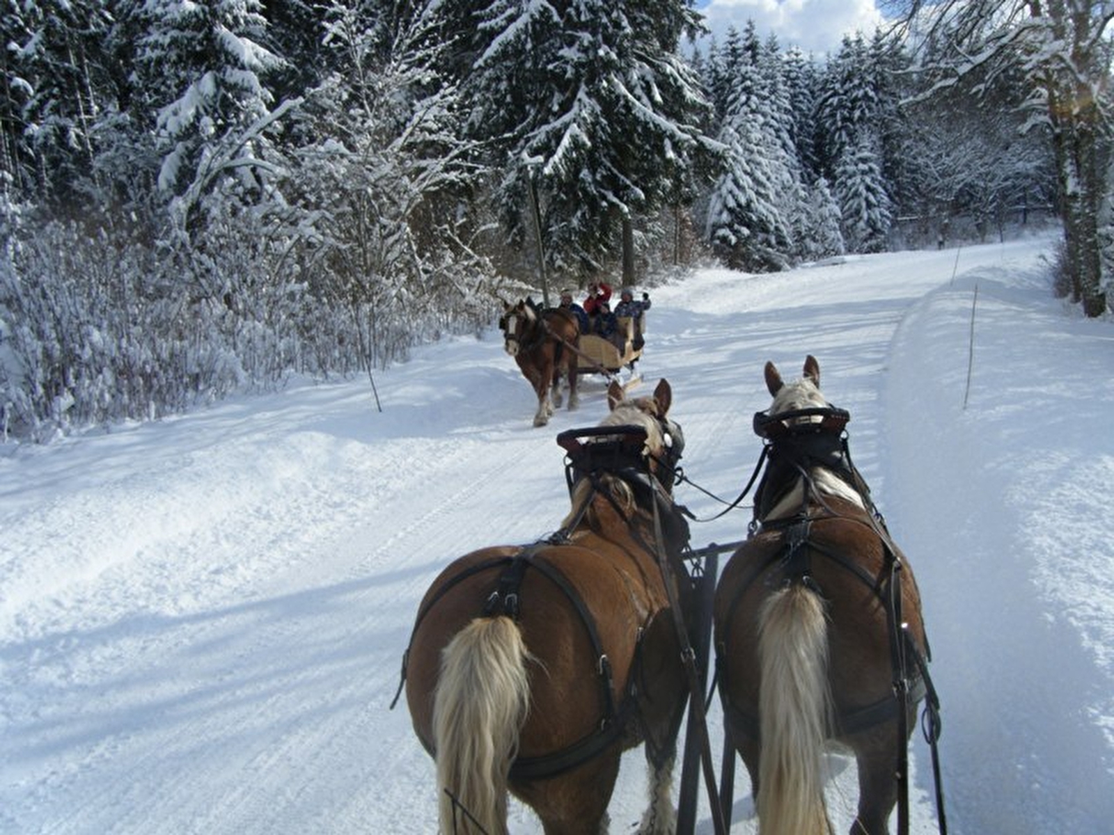 Après le petit-déjeuner, balade accompagnée en traîneau à cheval, en pleine nature.