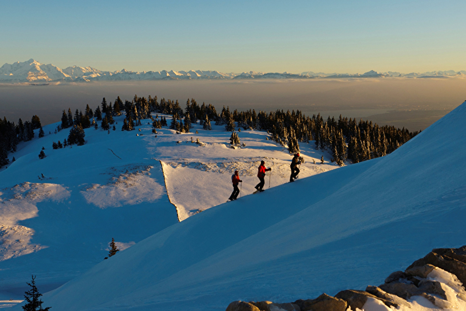 Un week-end "nature" pour découvrir des paysages et des reliefs parfaitement adaptés à la pratique de la raquette ! Après une ascension magique raquettes aux pieds, perchés sur les flancs du Mont Tendre, admirez votre point de vue unique... à 180 °, sur les Alpes. En randonnant à travers les "prés-bois", de crêtes en combes, au milieu des épicéas, en vrai Davy Crockett, vous apprendrez à reconnaître les traces et indices de présence des animaux sauvages.