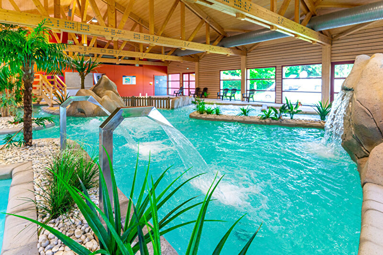 Le camping dispose d'un parc aquatique composé d'une piscine extérieure, de 7 toboggans pour les grands dont le Spacebowl et d'une pataugeoire pour les plus petits. Il propose également un espace couvert et chauffé avec une piscine, une rivière massante, une balnéo et un bain à remous.
